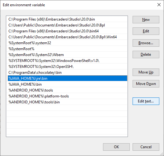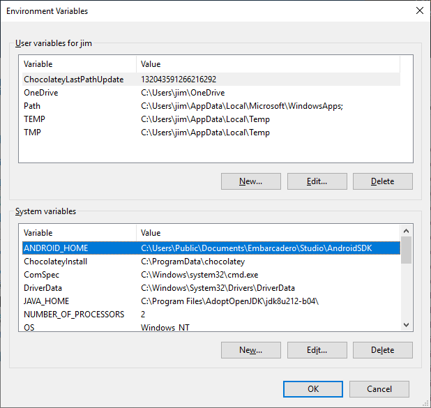 This assumes you already have RAD Studio, Delphi, or C++Builder 10.3 Rio already installed. 10.3 Rio changed the versions of the SDK and NDK that it uses, so this guide won't work with other versions. Also, I switched to AdoptOpenJDK instead of the traditional Oracle JDK. I'll show you how to install that here, but if you use a different JDK that will be different for you.