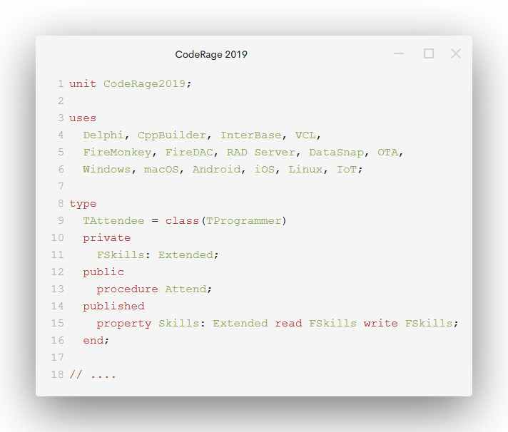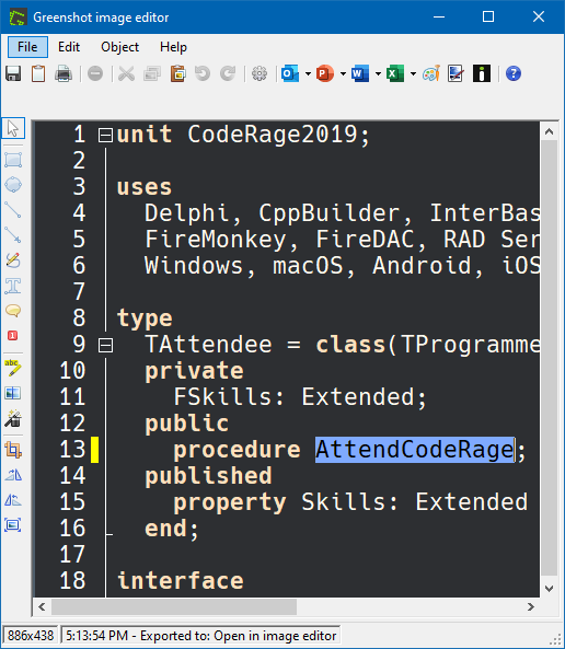 Instacode is the Instagram of the bunch, with image filters like tilt shift and 3D rotation. Directly supports Delphi language, and you can share via a URL that allows someone to access the code and remix the image. Even has wallpaper generator.